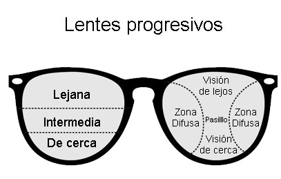 Estos lentes tienen un incremento continuo en el aumento desde la parte superior hasta la parte inferior del lente , lo que le ayuda a ver claramente en todas las distancias con un solo par de lentes.